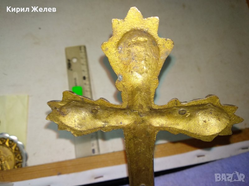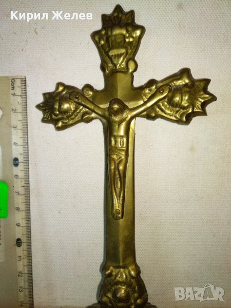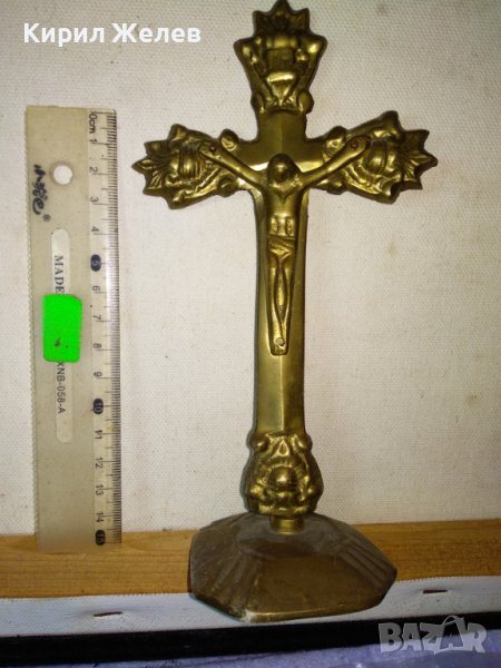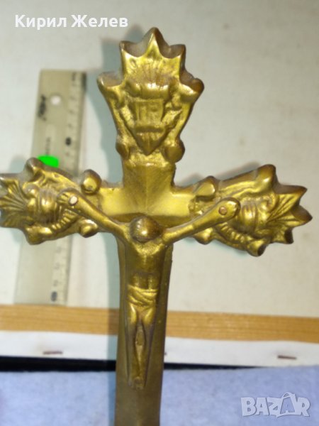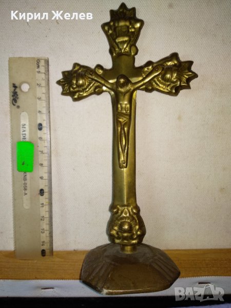 Старо ГОЛЯМО МАСИВНО КРАСИВО БРОНЗОВО НАСТОЛНО РАЗПЯТИЕ КРЪСТ За ДОМА / КОЛЕКЦИЯ 42688