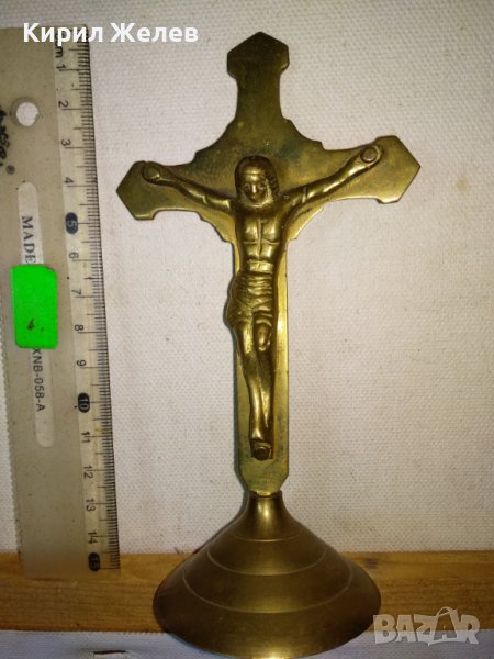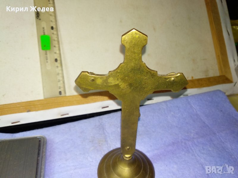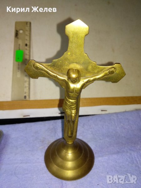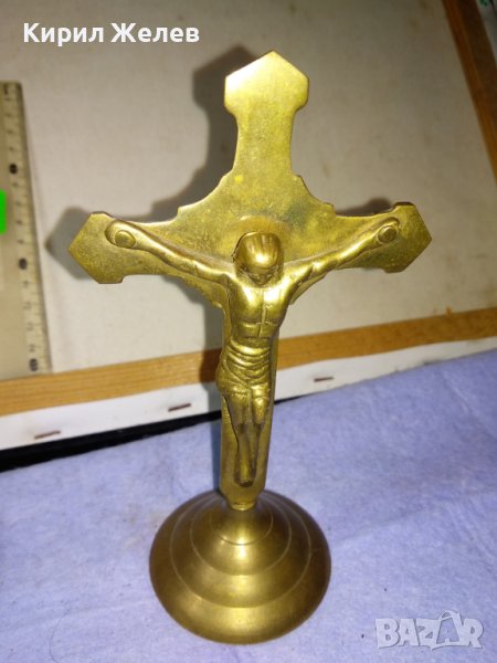 Старо СТИЛНО КРАСИВО МЕСИНГОВО НАСТОЛНО РАЗПЯТИЕ КРЪСТ За ДОМА / КОЛЕКЦИЯ 42673