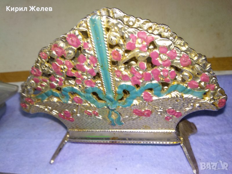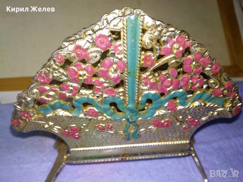 Стара РУСКА СССР МЕТАЛНА ФЛОРАЛНО ОРНАМЕНТИРАНА НАСТОЛНА ПОСТАВКА За ПИСМА БЕЛЕЖКИ САЛФЕТКИ 41345