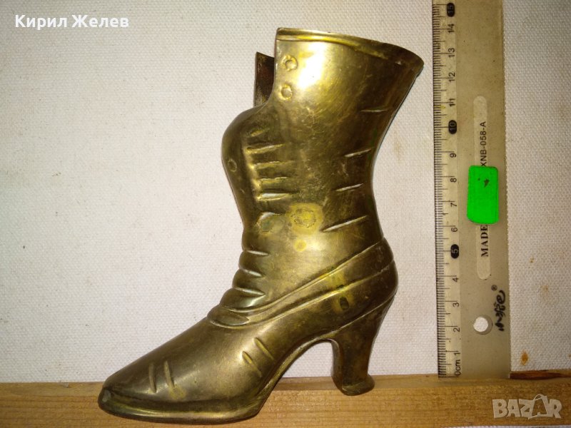Старо ГОЛЯМО КОЛЕКЦИОНЕРСКО КРАСИВО ШАРМАНТНО БРОНЗОВО ДАМСКО БОТУШЧЕ - ВАЗА МАЙСТОРСКА РАБОТА 42754