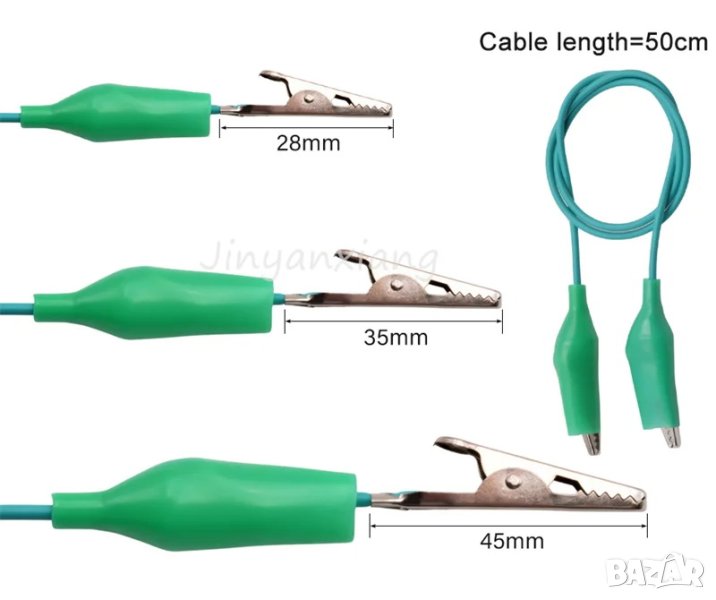 Мгновено свързване: Крокодилчиците се закачат мигновено към клеми, проводници, пинове на компоненти или дори цели платки, без нужда от инструменти.