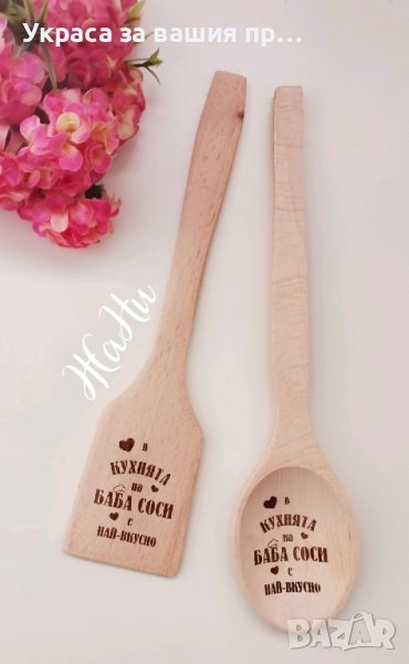 Подаръчен комплект за БАБА за имен ден, рожден ден, юбилей, Бабинден 8ми Март* дъска*шпатула* лъжицаКато може да се добави име или без