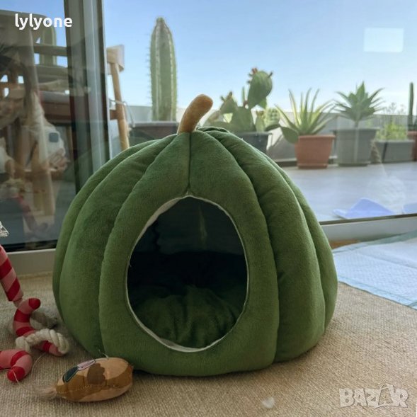 Уютната и топла - къщичката във формата на Тиква. Затворена, като хралупка осигурява на любимия Ви домашен любимец лично пространство, както и удобно място за сън и почивка.