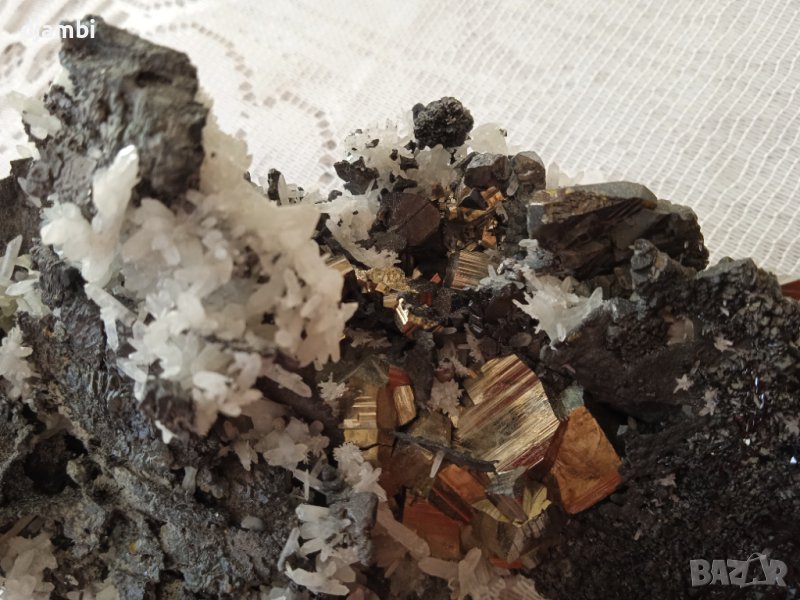 №15, Сфалерит със зелен кварц и пирит, Кристали, Минерали, Родопи, → Обява 43833561