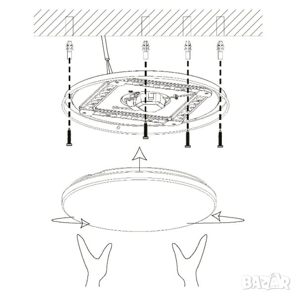 Кръглата LED таванна лампа от стомана и абажур от пластмаса в бяло разсейва светлината широко и приятно в стаята и създава блестящ кристален ефект при преместване. EGLO LED таванна лампа Pogliola-S, Ø 50 cm. Лампата с 1 пламък с кристален ефект може да се използва и като стенна лампа. LED таванната лампа от стомана и пластмаса в бяло може да се използва в много стаи, независимо дали в хола, кухнята, офиса, коридора или спалнята.