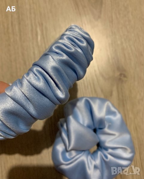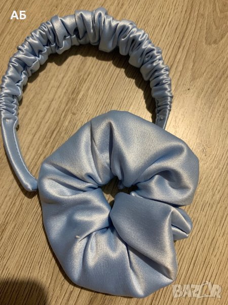 Чисто нов комплект от диадема за коса и скрънчи в светло син цвят.