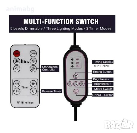 Брой светодиоди: QBDIM-60W Общо 306PCS; (660nm: 78бр. 620nm: 32бр. 730nm: 2бр. 460nm: 30бр. 395nm: 2бр. 4000K: 162бр.);