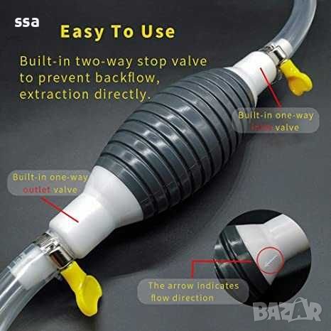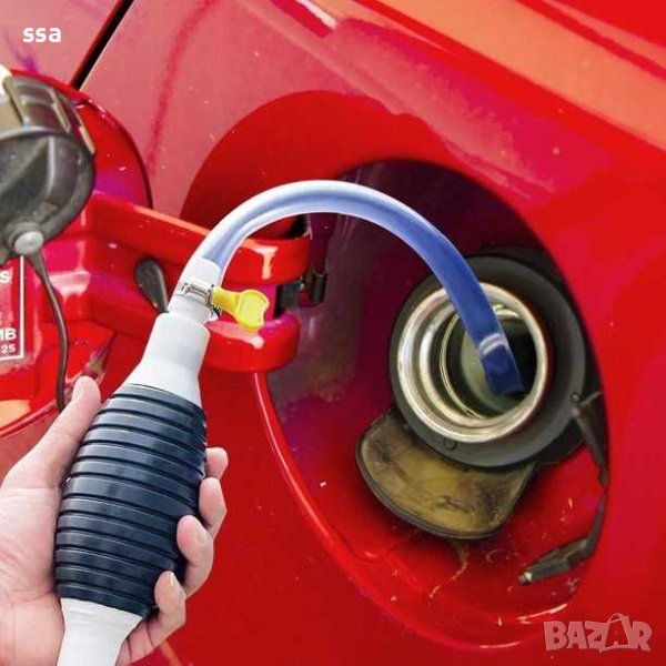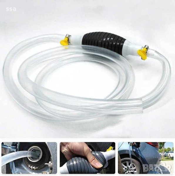-> Забележка: Източника на течност, трябва да е ПО-ВИСОКО от целевия съд. Краят на маркуча трябва да остане вътре в течността, а не само на повърхността.
