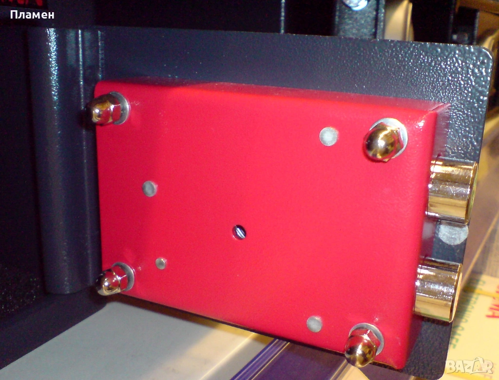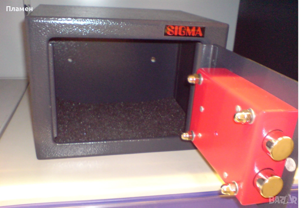 Механичен сейф: Корпус дебелина на вратата 3 мм. дебелина на стената 1,5 мм. Приспособления за закрепване на стена с 2 блокиращи болта.