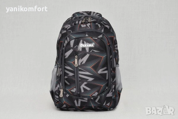 Ученическа раница DURABLE, кат.ном. 1838 практична и удобна.Има едно основно отделение, три предни джоба, два странични и удобен, ергономичен гръб.Раницата е със здрава дръжка в горната част и регулируеми презрамки.Размер продукт: см 29 х 45 х 12Вижте и другите модели в профила.