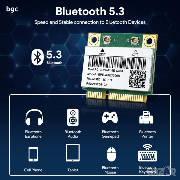 - 【Bluetooth 5.3】Нова функция BT5.3 Оборудван с Bluetooth устройства BT5.3 технология, която ви позволява лесно да се свързвате с широк набор от устройства за безпроблемна безжична комуникация. Поддържа свързване с Bluetooth слушалки, Bluetooth стерео, Bluetooth клавиатура, Bluetooth мишка и други за повече удобство и търсене. Ефективно WiFi излъчване Поставете го в настолен компютър, за да изградите безжични WIFI сигнали. Мобилни телефони, лаптопи, таблети, компютри могат да се свързват.