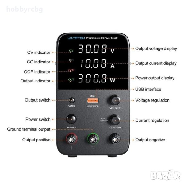 Лабораторно захранване WANPTEK серия WPS е високопрецизно регулируемо правотоково захранване, което може да показва напрежение, ток и мощност едновременно. Изходното напрежение и изходният ток могат да се регулират непрекъснато между 0 и номиналната стойност с помощта на потенциометър, като зададената стойност може да бъде предварително показана, което е удобно за използване и настройка. USB порт за бързо зареждане и поддържане множество протоколи за бързо зареждане.