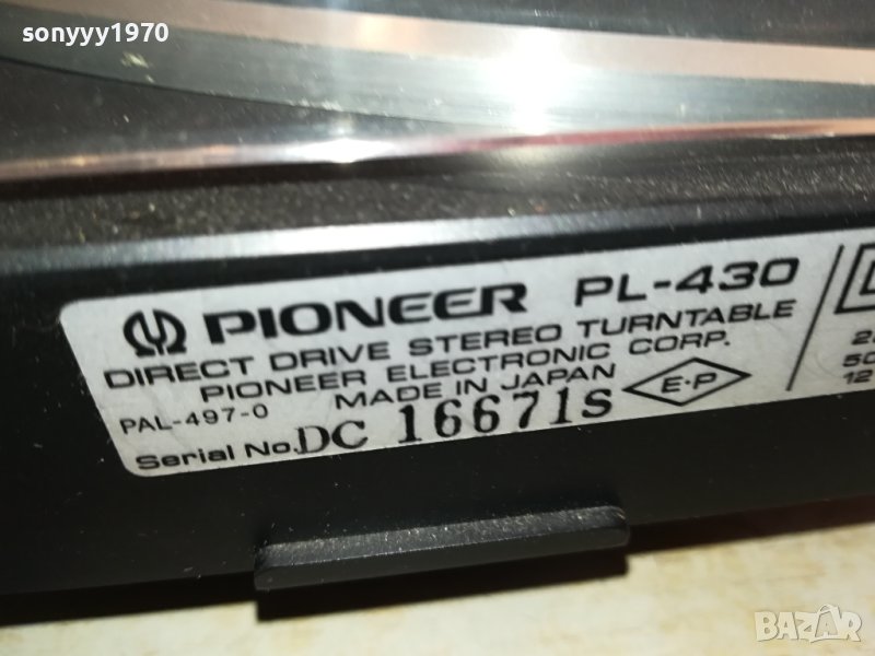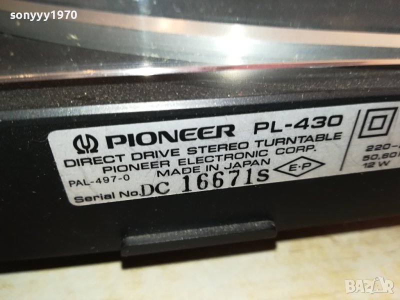 PIONEER PL-430 MADE IN JAPAN-ВНОС ENGLAND-AUDIO-TECHNICA ЗДРАВА ИГЛА РАБОТИ ИМА И КАШОН С СТИРОПОРИ-ИДЕАЛНА ВИЗИЯ-ЗАБЕЛЕЖКА РАМОТО НЕ СЛИЗА ДОЛУ ДА СВИРИ-НЕ Е ПИПАН В БГ НОВ ВНОС-КРАЙНИ ЦЕНИ.ПАЗАРЛЪЦИ НЕ! пращаме със спиди или еконт с преглед и тест след превод на капаро за куриерската услуга поради зачестили некоректни потребители-поръчки само тук в саита! по телефона и със смс не! краини цени! бартери не правиме! ПАРИ НЕ ВРЪЩАМЕ! всеки ден нови неща-още 2-3 наши обяви тук