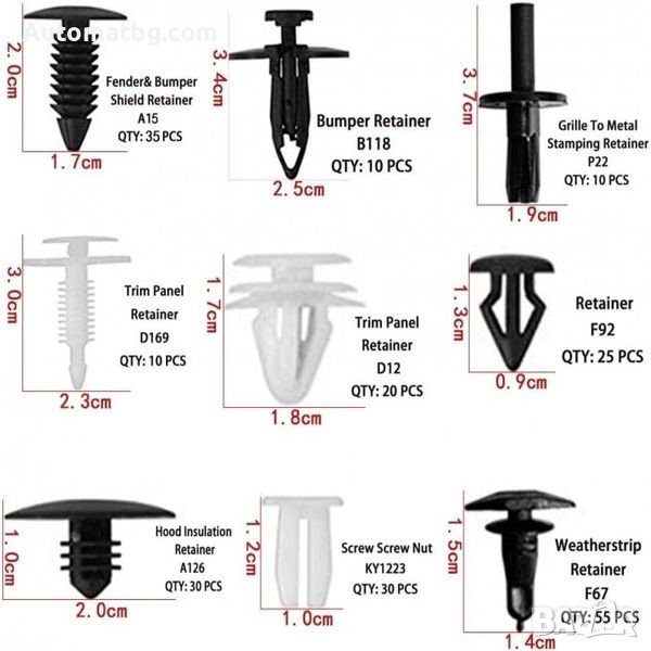 Комплект щипки Automat, Копки 421бр, Клипсове с инструмент за демонтаж.