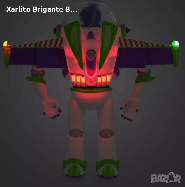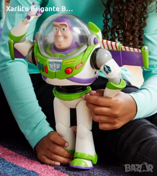 Buzz Lightyear оживява със светлини, звуци и невероятни действия! Отидете на вълнуващо приключени с говорещата и ходеща фигура на Баз Светлинна Година! Децата ще ще се влюбят в него. Той върви напред и назад и говори, примерно „Buzz Lightyear to the rescue!” или “We’re on a mission to find our friends!“ и т.н. Натиснете големия червен бутон от лявата му страна, за да разгърнете крилата му и да чуете серия от фрази, докато се движи напред, а понякога и назад, и може да завърта краката си! Други автентични звуци включват голям реактивен самолет, разгръщане на крилата и три опции за бластери.