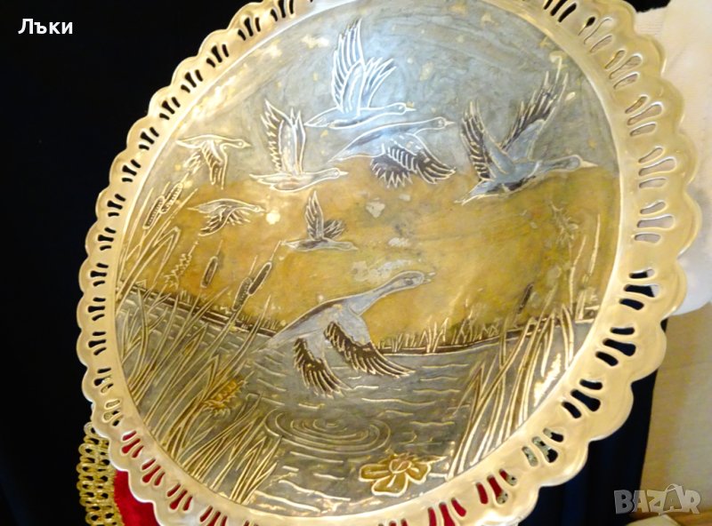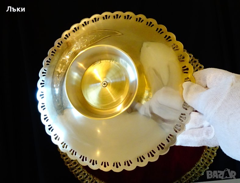 е обкантена с нежен златен ажур.Като гледам тази изключителна фруктиера,пред мен оживява приказката на Андерсен „Дивите лебеди” и си представям как сестра им принцеса Елиза,хвърля ризите от коприва,които е изплела с нежните си ръце,за