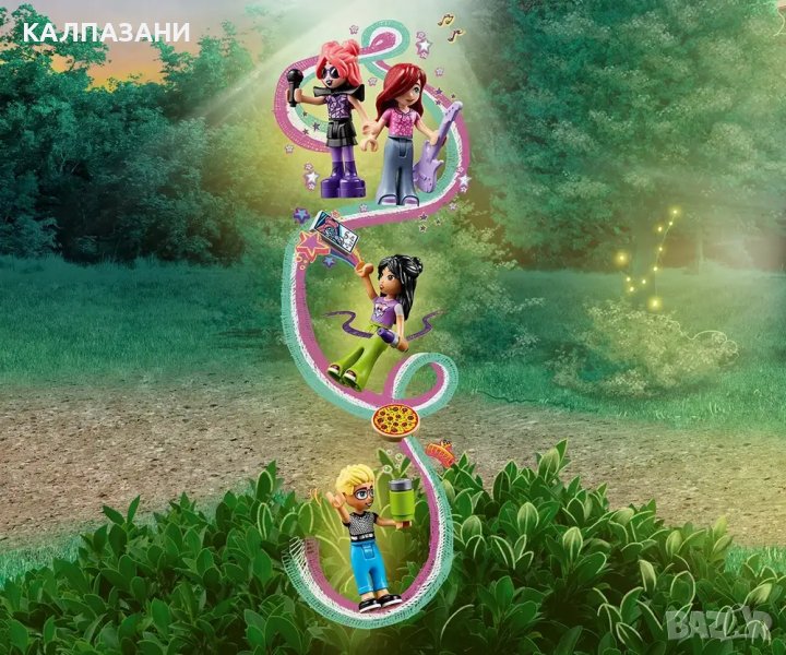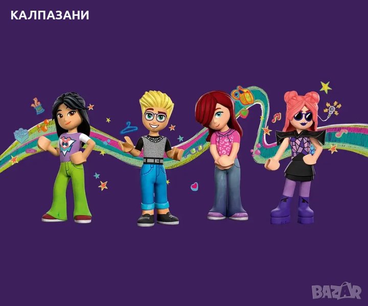 - Играчка за социално и емоционално развитие с 4 миникукли и аксесоари – комплектът включва 4-ма герои от LEGO® Friends, включително отделни миникукли за Пейсли/Лей-Ла, така че децата да могат да разиграват трансформацията на певицата