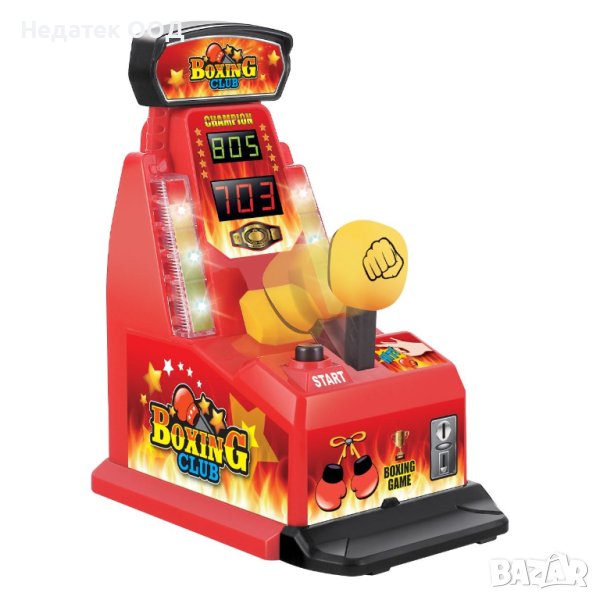 Настолна игра за бокс с пръсти.Натиснете бутона на спусъка и боксовата круша автоматично ще се повдигне, насочете я към центъра и ударете с цялата си сила.Вижте резултата на яркия екран и може да сте победител.Работи с 3 AA батерии (не са включени).