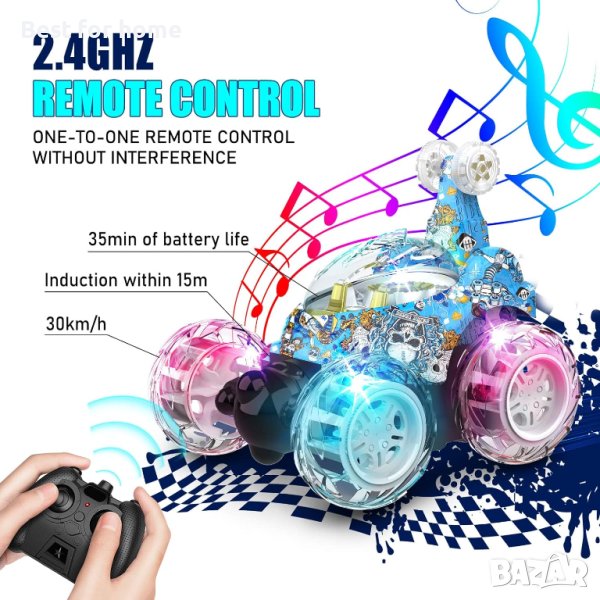 - RC колата е стилна и забавна с камуфлажен стил на графити, ослепителни светлини и вградена 6 страхотна музика.