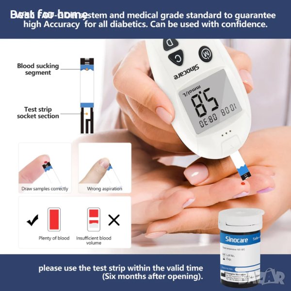 Този монитор за кръвна захар може бързо да получи стойност в рамките на 5 секунди след извършване на тест за диабет, без кодиране.