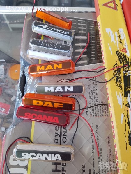 Диоден LED Габарит с неонова светлина-за всички Камиони,Мерцедес Ман Даф Скания Волво Ивеко Рено/като надпис и марки!Цветове бяло жълто и червено.Капачета стойки комплект към тях за захващането и монтажа.Цената е за брой