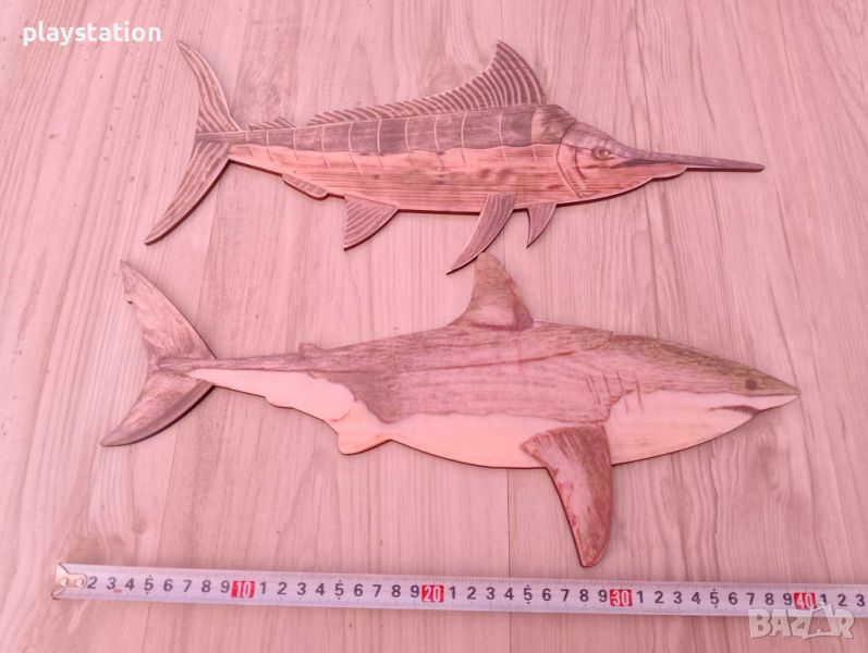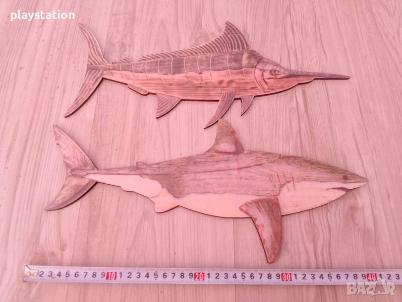 Декоративна дървена риба меч и акула с размер 40см на 15см. Материал: дървесина. Цена: 40лв Броя