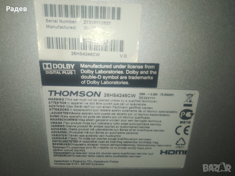 телевизор на 24 волта 26 инча с тунер за ефирните канали за камион,кемпер,каравана,къмпинг,палатка