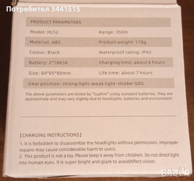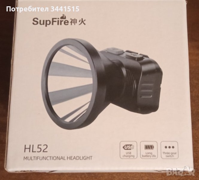 Челникът Superfire HL52 се отличава с голям рефлектор, който осигурява светлина с висок интензитет и обхват до 350m.