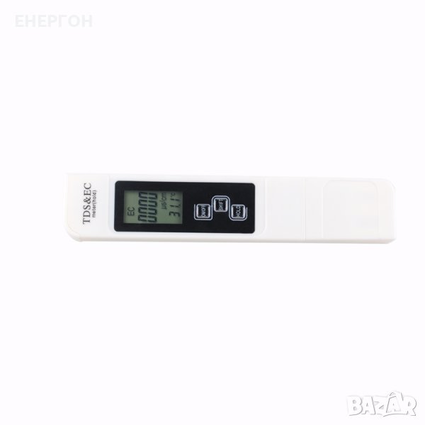 Измерва TDS (total dissolved solids) и ЕC (електропроводимост). TDS
