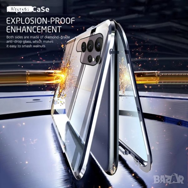 > Има закалено стъкло и на предната и на задната рамка. Осигурява 360 градусова защита на телефона, тъй като го затваря от всички страни.