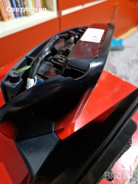 Оригинално дясно огледало за Nissan Qashqai J11. Забележка, има отчупено пърченце на огледалото, което се вижда на снимката. Огледалото е с 13 пина, 360 камера, подгряване, ел. регулиране и автоматично прибиране.