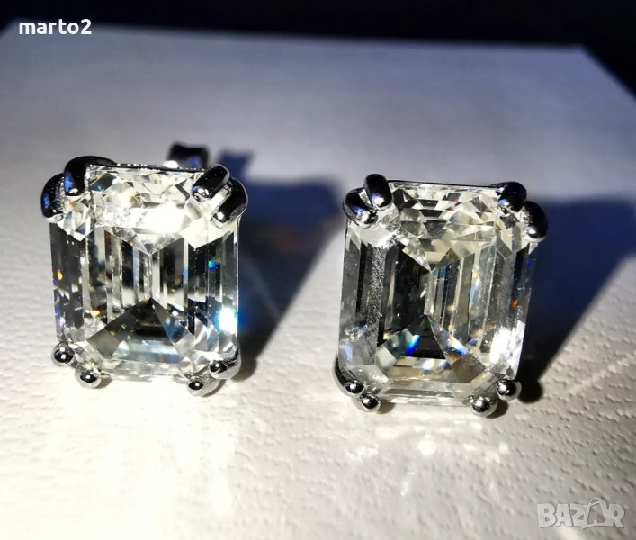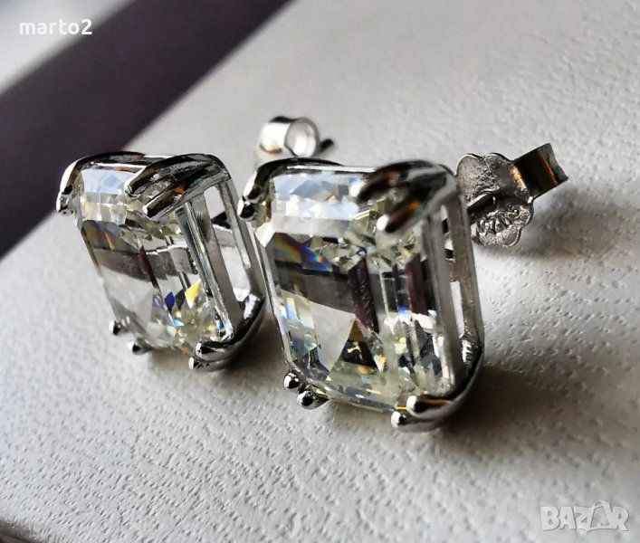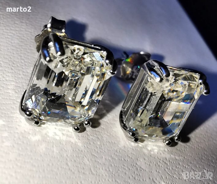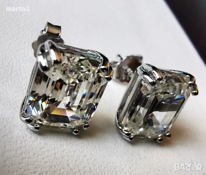 Елегантни Сребърни 925 Обеци с Голям Кубичен Цирконий - Emerald фасет. → Обява 43863541