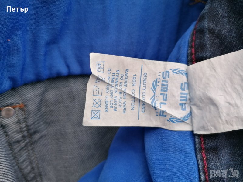 Продавам тъмносини дамски /мъжки дънки Denim Simply. На етикета пише номер 33, но вероятно е дамска номерация - ето размер в см за по-сигурно : талия 86, ханш 115, от чатала до долу е 84, крачола долу е с обиколка 41 см. Купени са без етикет, но размерът не става. Писал съм, че са нови, защото нямат никакви следи от ползване - или са нови или като нови