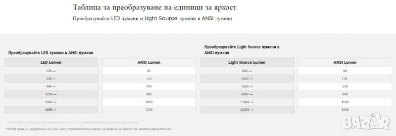 Какво са ANSI, Light Source и LED лумени?