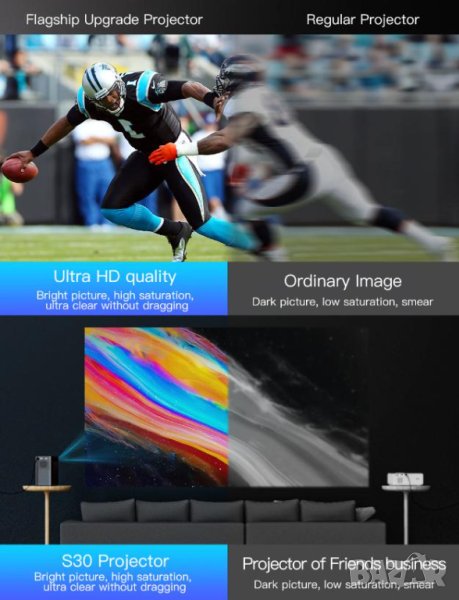 S30™ MAX® 4P4D4K UHD 4096x2160P 9500L WiFi Мултимедиен Проектор Android Screen Mirror Клониран Екран