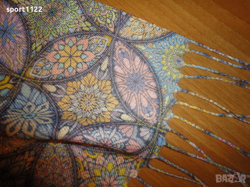 Голям дамски шал, 100% кашмир, неупотребяван. Нежен цветен принт, със златиста нишка.