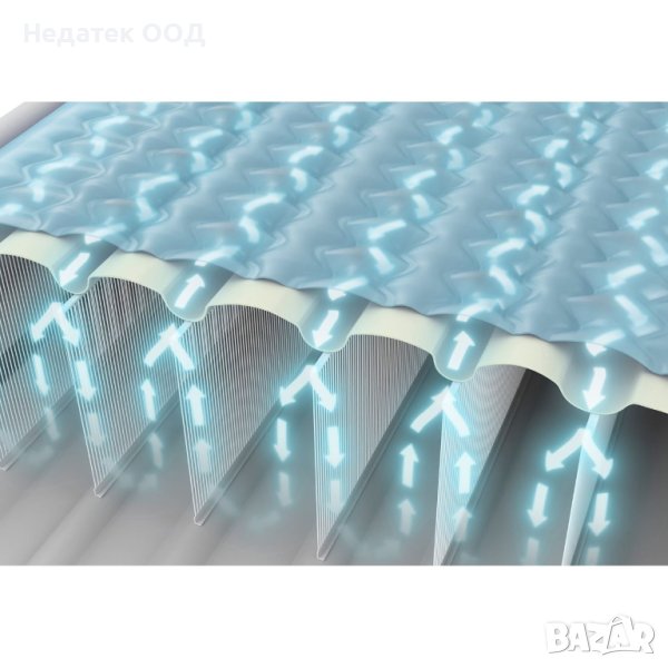 Надуваем матрак за сън с плюшена табла и технология Fiber Teck. 40-сантиметровата табла предпазва възглавниците от пода и осигурява опора при сядане. Има уникална конструкция на ръба за по-голяма стабилност и опора и мека кадифена повърхност за спане отгоре и отстрани. Има вградена помпа за бързо надуване и изпускане (надува за около 5'). Включва чанта за носене.