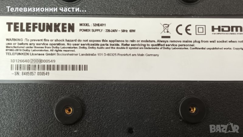 Telefunken 32HE4011 със счупен екран-17IPS63/17MB140TC/RF-CF320004AE30-0601 A2/VES315WNGL-L3-N91 → Обява 43867667