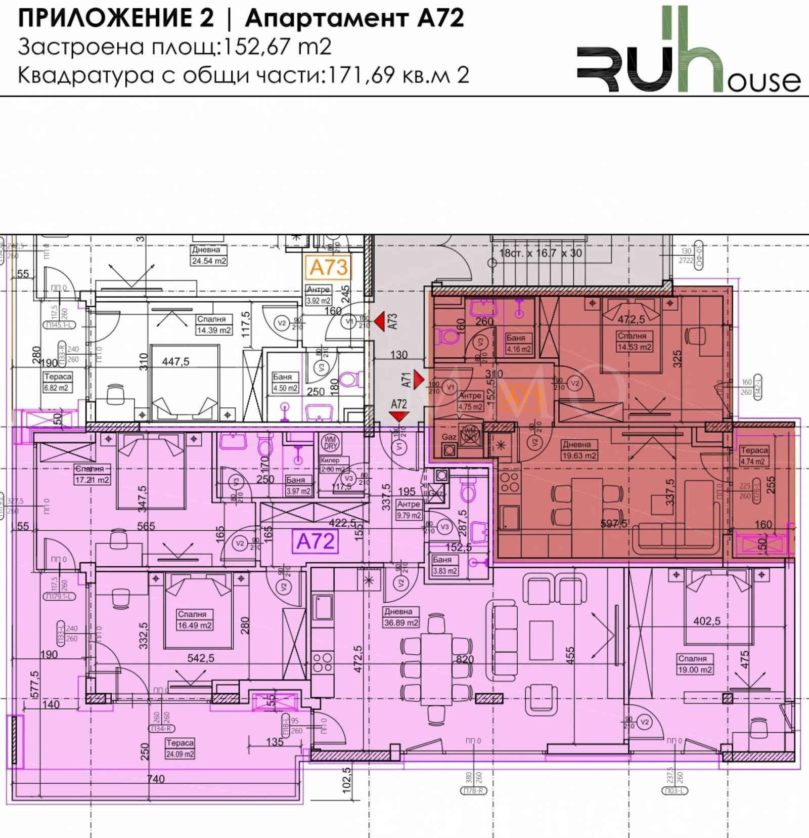 Без комисиона! С АКТ 16. Представяме за продажба просторен четиристаен апартамент с обща площ 171.69 кв.м в модерен нов комплекс в столицата, в кв. 'Кръстова вада'. Комфортният имот се намира на 7-и етаж от 9. Изложенията - всички без север, с безпрепятствена, прекрасна гледка към Витоша! На чиста площ от 152.67 кв.м са разпределени удобно антре, килер/мокро помещение, 2 бани с тоалетни, 3 спални, дневна с кухня и трапезария, голяма панорамна тераса с гледка към Витоша и града. Едната спалня е със собствена баня. От дневната и две от спалните има излаз на терасата. Възможно е закупуването на гаражи на цени от 55 000 Евро без ДДС. Комплексът предоставя уют, комфорт и качествена среда за живот. Сградата ще бъде завършена с изцяло окачена фасада от LAMINAM, алуминиева дограма SCHUCO, асансьори SCHINDLER, с луксозни общи части, богато озеленен вътрешен двор, денонощна охрана, видеонаблюдение и контрол на достъпа. Жилищата са с малък процент общи части 11%, светла височина на таваните - 2.70 м, а апартаментите на последен етаж са със светла височина 3.30 м. Имотите са с правилни форми на помещенията и големи прозорци с максимално ослънчаване. Комплексът е разположен в полите на Витоша, на самия булевард 'Черни връх', в кв. 'Кръстова вада', до парк 'Лозенец', до мол 'Парадайс', 'Фантастико', бензиностанция 'ЕКО' и бъдеща метростанция. Всички имоти се издават по БДС: Алуминиева дограма Schuco AWS 70 HI. Тераси с настилка от студоустойчив гранитогрес с монтиран парапет според проект. Входна блиндирана врата с включен обков, тристранно заключване. Газова, ОВК, Ел. и ВиК инсталации. Отопление на газ и изградена инсталация за климатици със скрит монтаж. Oкачена вентилируема фасада от Laminam и HPL плоскости. Общи части с дизайнерско осветление по ...