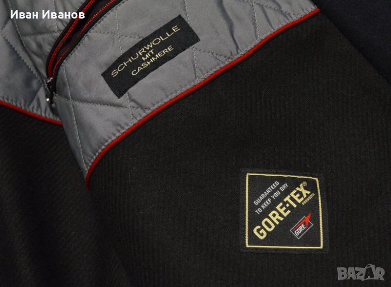 Отличен модел от вълна и кашмир с техническа Gore-Tex мембрана. Мембраната гарантира устойчивост на вятър и вода, докато транспортира потта навън. Закопчава се с плътен цип, покрит с панделка с копчета.