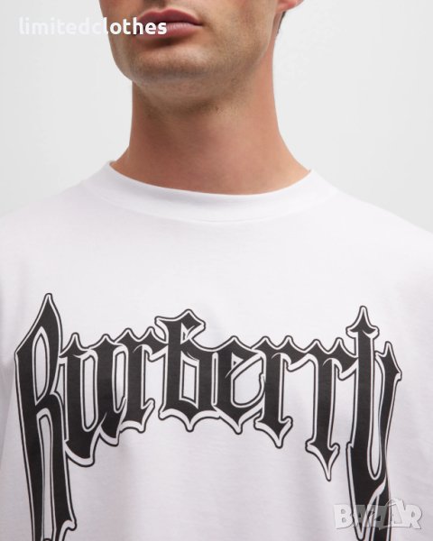 BURBERRY WHITE GOTHIC ROCK LOGO PRINT OVERSIZED Мъжка Тениска