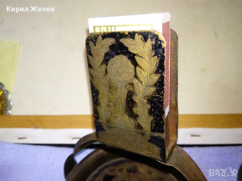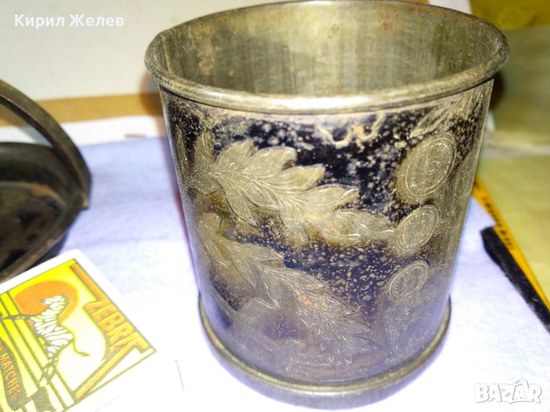 СТАР РЯДЪК РУСКИ МЕТАЛЕН КОЛЕКЦИОНЕРСКИ ТЮТЮНДЖИЙСКИ КОМПЛЕКТ ПОСТАВКА За КИБРИТ и ЧАШКА 42749
