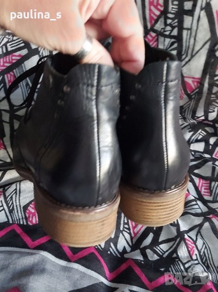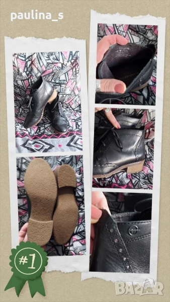 1️⃣ Колаж / Номер 39 / "Tamaris". Цената е крайна 59,99лв / 30 евро. Дамски боти от естествена кожа - модел Оксфорд с немското качество на марката. Обозначенията за естествена кожа и състоянието са видими от снимките. Може да се носят и от 40 номер - за тесен крак, и от 38 номер - за широк. Подметката е от гьон, много удобна и еластична! Една бройка, без дефекти. Стелка 26,5см(издължена, поради модела) / ток 3см / височина 10см
