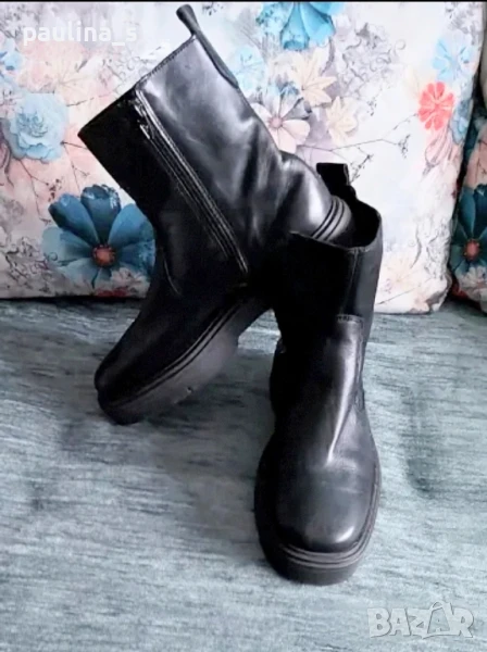 2️⃣. Колаж / Номер 39 / "PACE" crafted shoes. Цената е крайна 119,99лв / 60 евро. Естествена кожа / "Челси" модел унисекс боти. Номерът е 39, но са уголемени, според мен. Купени са за много повече, но са ми големи. Кожата е много мека и качествена, подметката е стабилна и не се пързалят. Нови са, пробвани само в къщи! Стелка 26,5см / Подметка 28см / Глезен обиколка 27см / Височина 16см / Горе обиколка 27см.