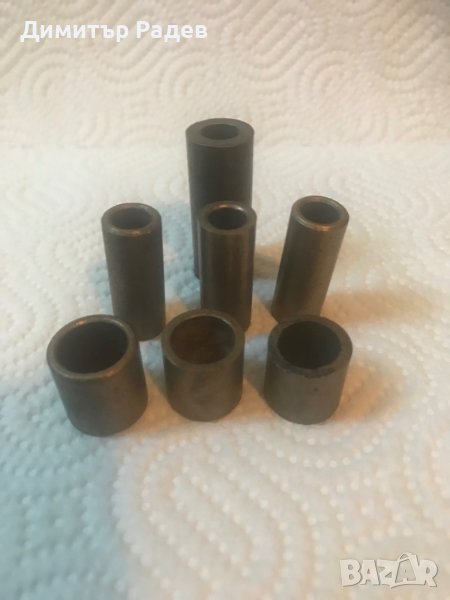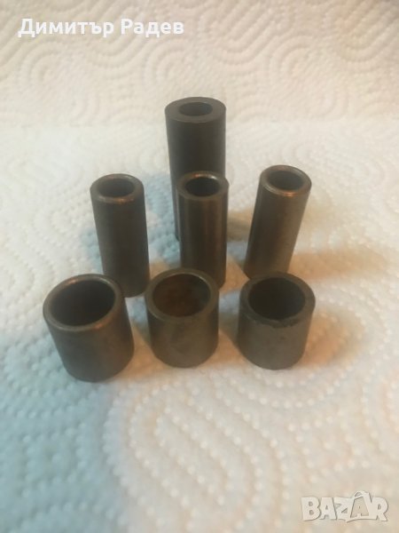 ВТУЛКИ ОТ СИНТЕРОВАН БРОНЗ ИЗВАРЕНИ ВЪВ ГОРЕЩО МАСЛО РАЗНИ РАЗМЕРИ----1 ВИ РЕД ВЪНШНО Ф 16мм-- вътрешен Ф 12мм височина 15мм--- 3 бр--ц-на 15 лв 2 ри ред външен Ф 12мм---вътр.Ф--8мм--3 бр--ц--на 11 лв 3 ти ред външен Ф 15 мм--вътр. Ф9 мм--1 бр --12 лв ВНИМАНИЕ при покупка на всичките 7 бр втулки ц- на 25 лв ВТУЛКИТЕ ОТ 1 ВИ РЕД СА ЗА ПУСКОВИЯ ДВИГ. НА М--Ч 412-2140-2146--ЗА РОТОРА.БЕЗ БАРТЕР