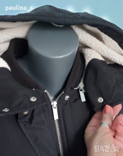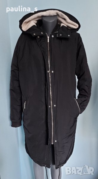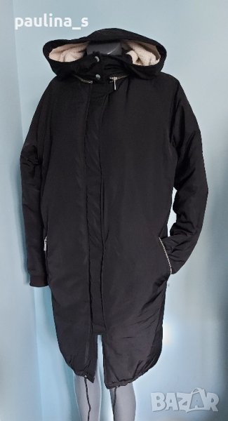 1. L / 2XL / "Noisy May" Много топла и качествена шуба тип парка с вата, качулка и дебела вата на Noisy May. Моделът е обран с коси джобове, реглан ръкави и регулиращ шнур в долната част, има и лек кожен ефект. Перфектна изработка, брандирани кабси и метални ципове. Без дефекти е, една бройка, става за посочените размери.