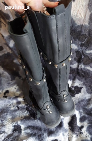 Много красиви дамски ботуши от естествена кожа DKODE / Portugal. Изцяло са изработени от естествена кожа, подметката е стабилизираща и оцветена с бели акценти, но е и мека. Ширината на прасеца се напаства ластична лента, кожата е мека, но дебела и топли, стои петнисто и луксозно. Без дефекти - протрито, скъсано или деформация по табана. Перфектни са.