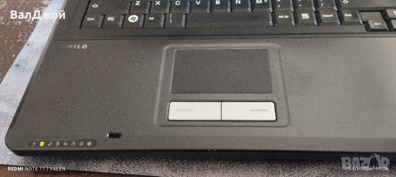Лаптопа работи много добре.15.4 Inches..Зарежда за две минути изключва за 15 секунди. RAM 3.. хард 320.. двуядрен процесор. лаптопа е почистен вътрешно и сменена термопаста.. батерия до половин час. с оригинално зарядно.Забележка..има звук но има пращене.