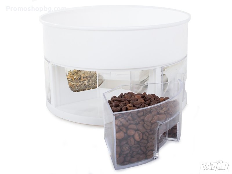 Органайзерът е оборудван с четири чекмеджета за насипни продукти като кафе, чай или подправки. Осигурява бърз и лесен достъп до това, от който се нуждаете.