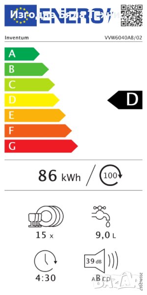 Луксозната свободностояща съдомиялна машина Inventum VVW6040AB е подходяща за 15 места, разполага с дигитален дисплей, ергономично чекмедже за прибори и горна кошница с регулируема височина. Тази съдомиялна машина с енергиен клас D използва само 9 литра вода на измиване. Можете да избирате от осем програми, включително еко и дуо програма. С дуо програмата запечените съдове отдолу се почистват старателно, докато стъклените съдове отгоре се изплакват деликатно. Случвало ли ви се е да останете без чинии? След това изберете опцията за половин товар. Тогава избраната програма ще работи по-бързо и по-малко интензивно, спестявайки ви време, енергия и вода. В допълнение, с отложен старт е възможно да стартирате избраната програма до 24 часа по-късно. Тъй като безопасността е на първо място, тази съдомиялна машина има вана от неръждаема стомана и Aquastop. Тази черна съдомиялна машина наистина привлича вниманието и изглежда страхотно във всяка модерна кухня. С ниво на шум от само 39 dB, тя е много тиха, така че можете безопасно да поставите съдомиялната в отворена кухня!